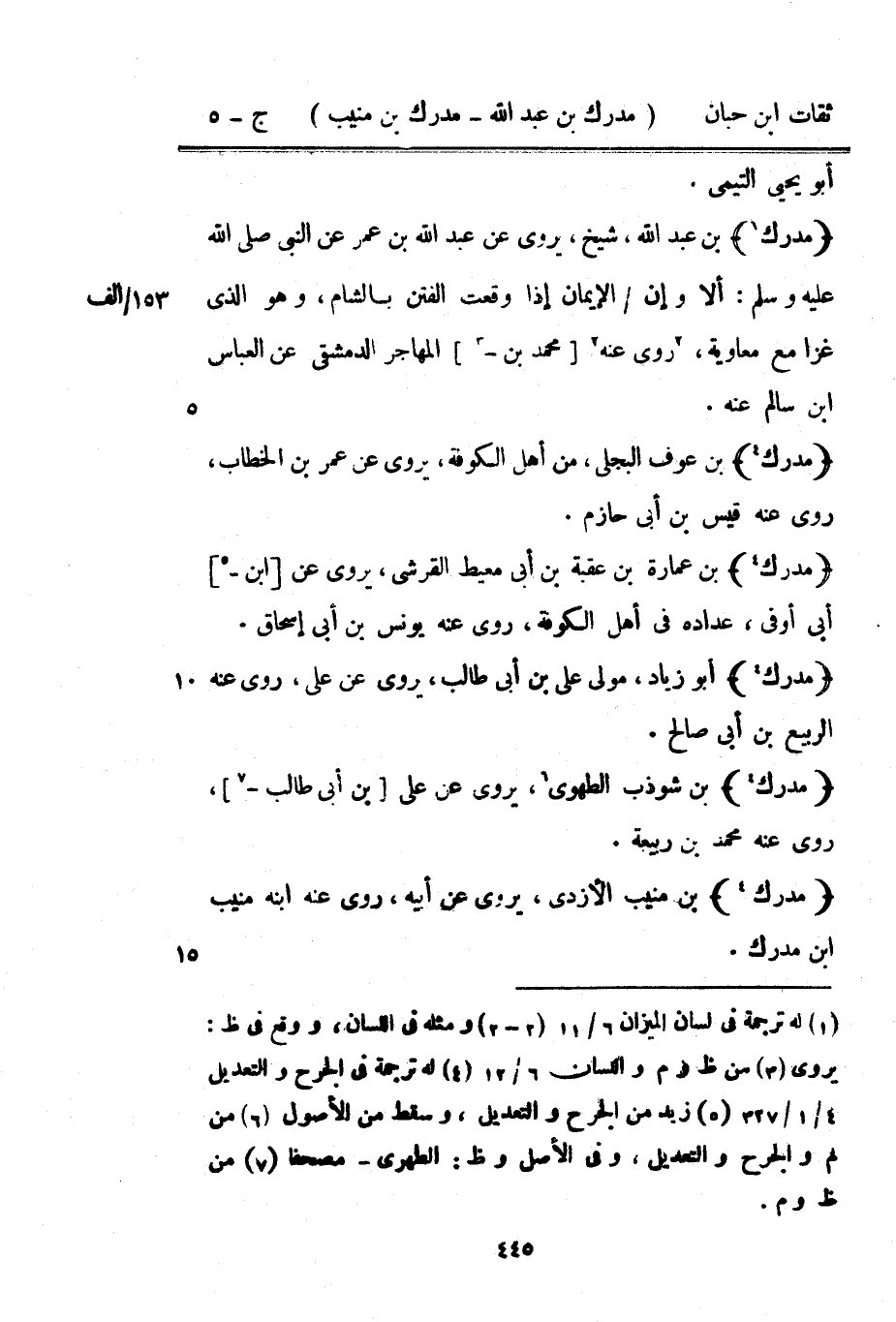 5639 - مُدْرِكُ بْنُ عَبْد الله شيخ يروي عَن عَبْدُ اللَّهِ بْنُ عُمَرَ عَنْ النَّبِيَّ صَلَّى اللَّهُ عَلَيْهِ وَسَلَّمَ أَلا وَإِنَّ الإِيمَانَ إِذَا وَقَعَتِ الْفِتَنُ بِالشَّامِ وَهُوَ الَّذِي غزا مَعَ مُعَاوِيَة روى عَنهُ مُحَمَّد بن المُهَاجر الدِّمَشْقِي عَن الْعَبَّاس بن سَالم عَنْهُ