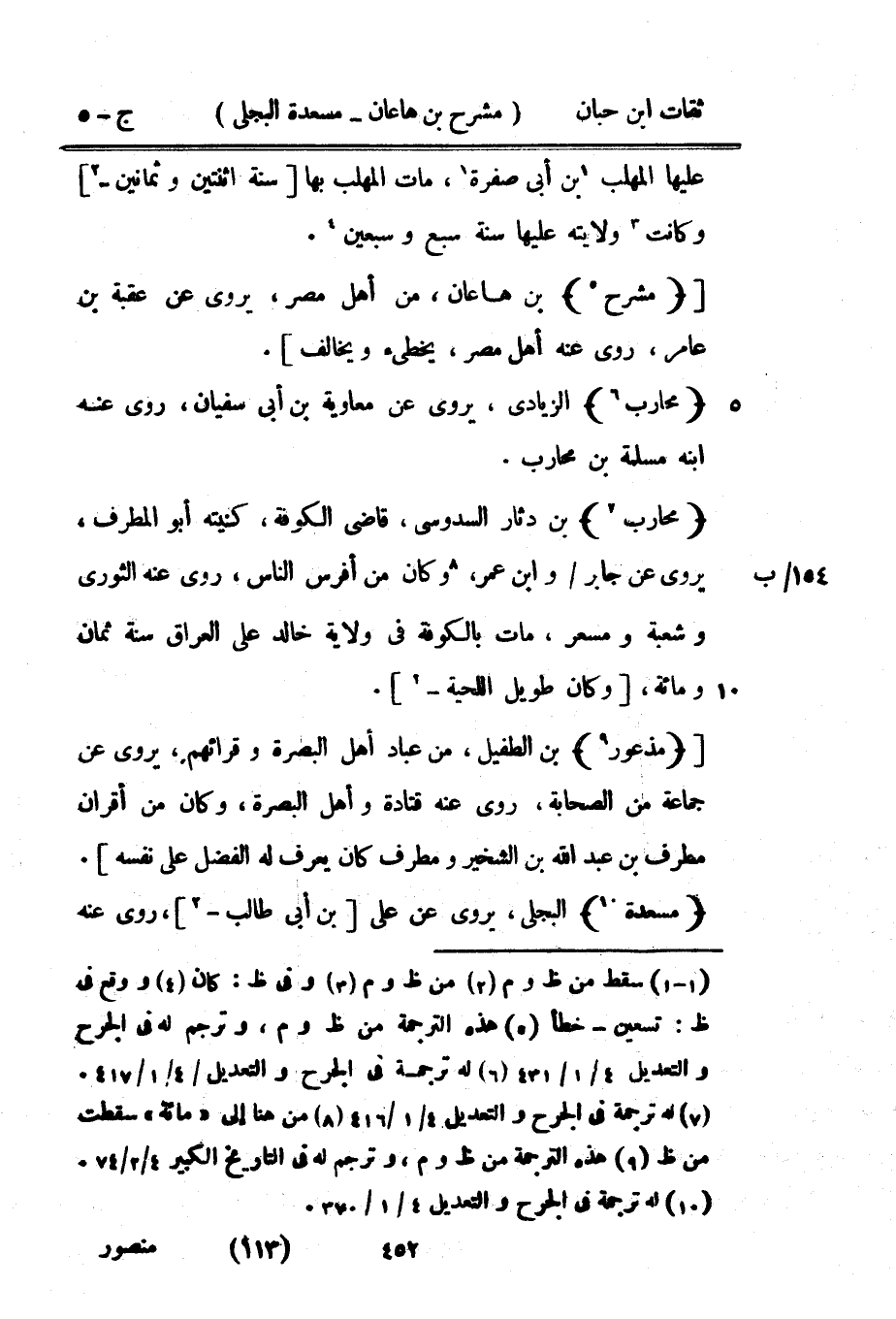 5679 - محَارب بن دثار السدُوسِي قَاضِي الْكُوفَة كنيته أَبُو الْمطرف يروي عَن جَابر وَابْن عمر وَكَانَ من أَفرس النَّاس روى عَنهُ الثَّوْريّ وَشعْبَة ومسعر مَاتَ بِالْكُوفَةِ فِي ولَايَة خَالِد على الْعرَاق سنة ثَمَان وَمِائَة وَكَانَ طَوِيل اللِّحْيَة