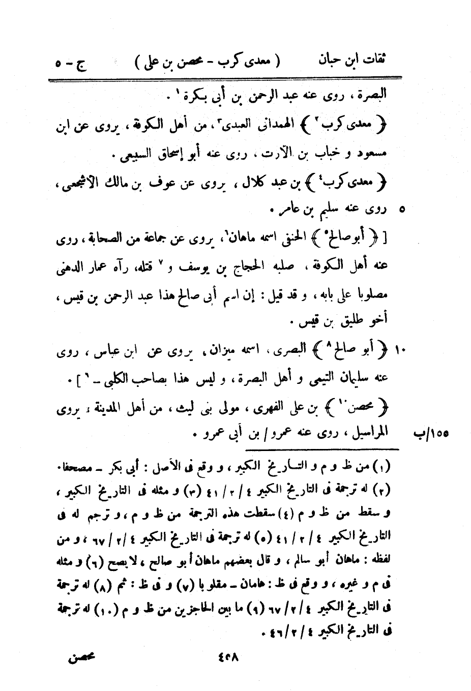 5709 - أَبُو صَالح الْحَنَفِيّ اسْمه ماهان يروي عَن جمَاعَة من الصَّحَابَة روى عَنهُ أهل الْكُوفَة صلبه الْحجَّاج بن يُوسُف وَقَتله رَآهُ عمار الدهني مصلوبا على بَابه وَقد قيل إِن اسْم أبي صَالح هَذَا عبد الرَّحْمَن بن قيس أَخُو طليق بن قيس