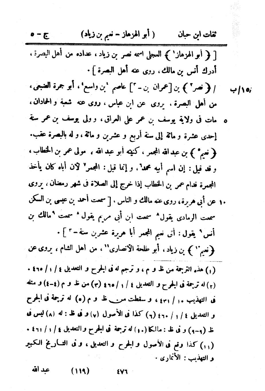 5802 - نصر بن عمرَان بن عَاصِم بن وَاسع أَبُو جَمْرَة الضبعِي من أهل الْبَصْرَة يروي عَن بْن عَبَّاس روى عَنهُ شُعْبَة والحمادان مَاتَ فِي ولَايَة يُوسُف بن عمر على الْعرَاق وَولى يُوسُف بن عمر سنة إِحْدَى عشر وَمِائَة إِلَى سنة أَربع وَعشْرين وَمِائَة وَله بِالْبَصْرَةِ عقب