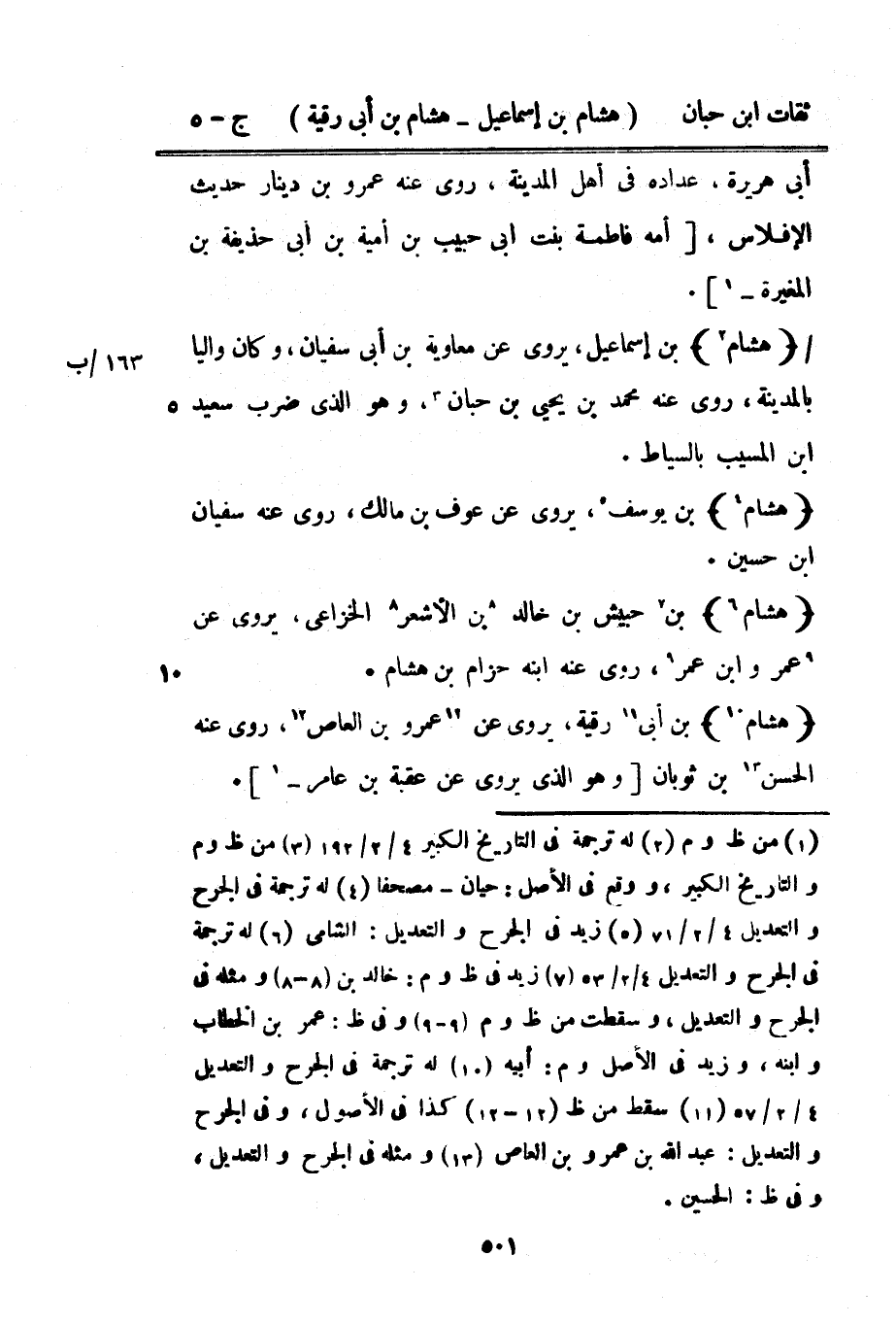 5933 - هِشَام بن إِسْمَاعِيل يروي عَن مُعَاوِيَة بْن أبي سُفْيَان وَكَانَ واليا بِالْمَدِينَةِ روى عَنهُ مُحَمَّد بن يحيى بن حبَان وَهُوَ الَّذِي ضرب سعيد بن الْمسيب بالسياط