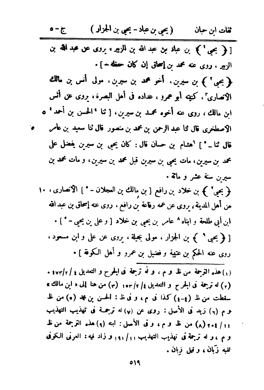 6024 - يحيى بن سِيرِين أَخُو مُحَمَّد بْن سِيرِين مولى أنس بن مَالك الْأنْصَارِيّ كنيته أَبُو عَمْرو عداده فِي أهل الْبَصْرَة يروي عَن أنس بْن مَالك روى عَنهُ أَخُوهُ مُحَمَّد بن سِيرِين ثَنَا الْحسن بن أَحْمد الْإِصْطَخْرِي قَالَ ثَنَا عبد الرَّحْمَن بن مُحَمَّد بن مَنْصُور قَالَ ثَنَا سعيد بن عَامر قَالَ ثَنَا هِشَام بن حسان قَالَ كَانَ يحيى بن سِيرِين يفضل على مُحَمَّد بن سِيرِين مَاتَ يحيى بن سِيرِين قبل مُحَمَّد بن سِيرِين وَمَات مُحَمَّد بن سِيرِين سنة عشر وَمِائَة