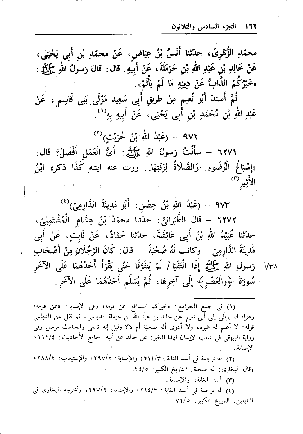 (¬3) له ترجمة فى أسد الغابة: 3/214؛ والإصابة: 2/297؛ وأخرجه البخارى فى التابعين. التاريخ الكبير: 5/71.