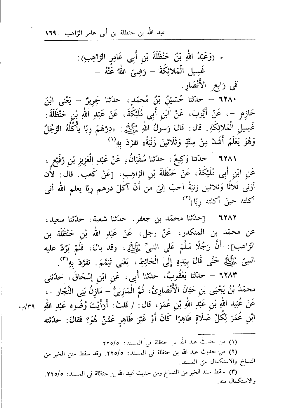(¬2) من حديث عبد الله بن حنظلة فى المسند: 5/225. وقد سقط متن الخبر من النساخ والاستكمال من المسند.