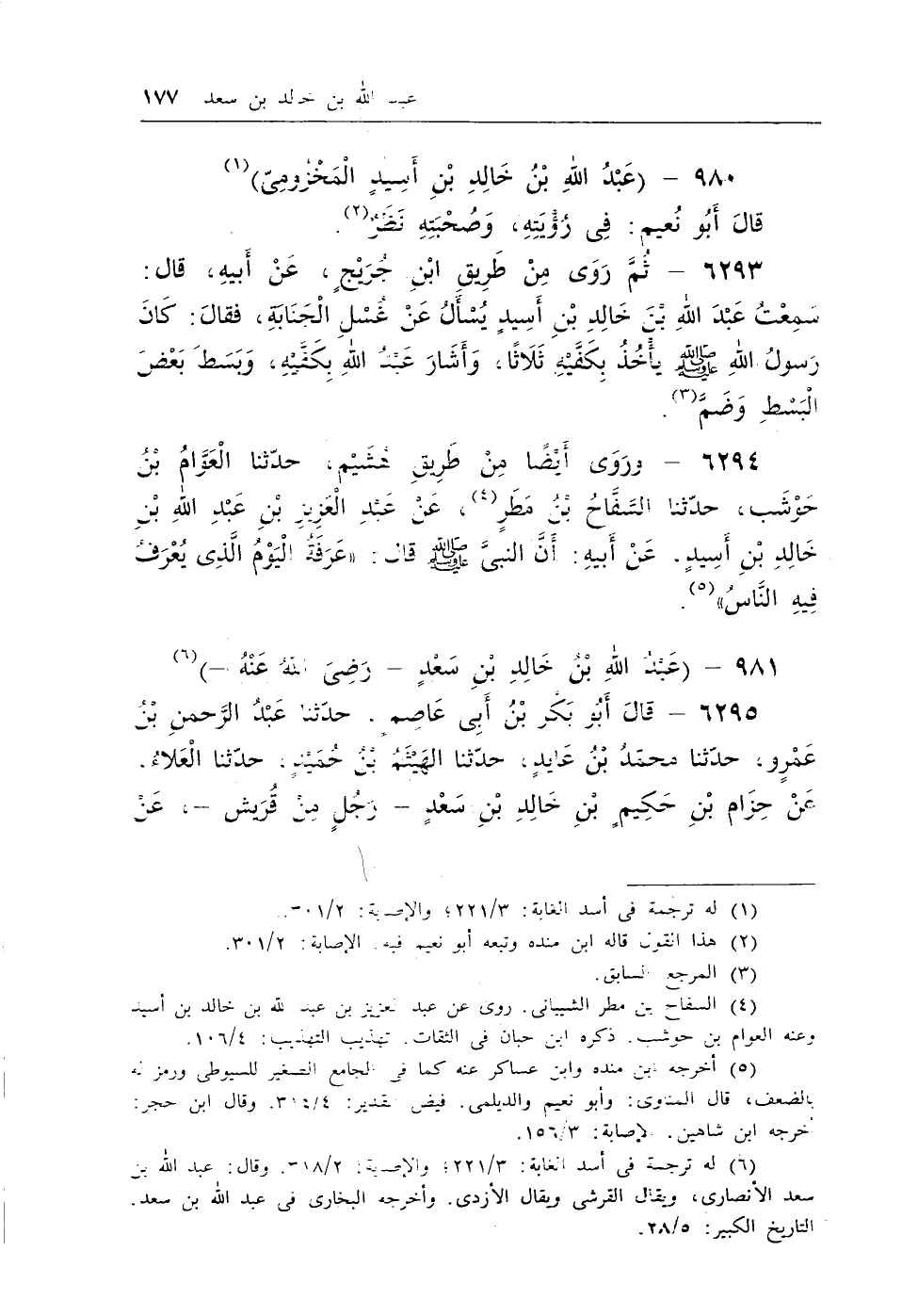 (¬6) له ترجمة فى أسد الغابة: 3/221؛ والإصابة: 2/318. وقال: عبد الله بن سعد الأنصارى، ويقال القرشى ويقال الأزدى. وأخرجه البخارى فى عبد الله بن سعد. التاريخ الكبير: