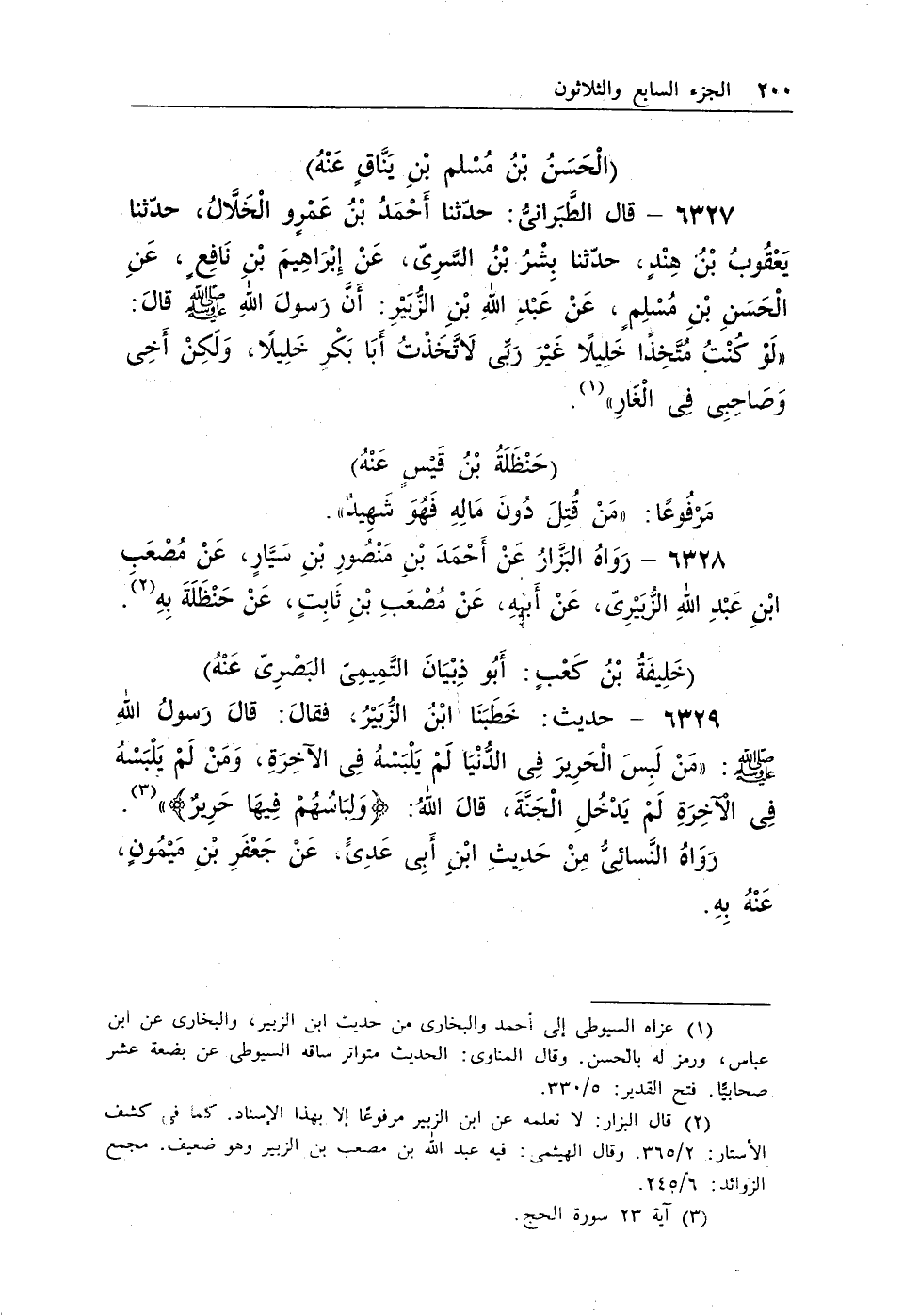 (¬2) قال البزار: لا نعلمه عن ابن الزبير مرفوعًا إلا بهذا الإسناد. كما فى كشف الأستار: 2/365. وقال الهيثمى: فيه عبد الله بن مصعب بن الزبير وهو ضعيف. مجمع الزوائد: 6/245.