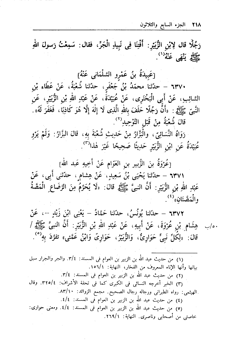 (¬3) من حديث عبد الله بن الزبير بن العوام فى المسند: 4/4.