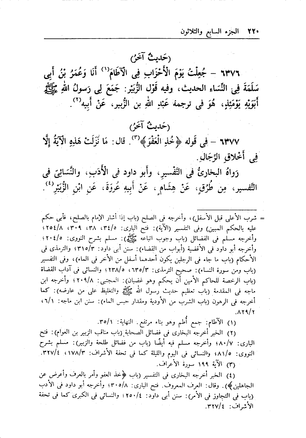 6377 - فى قوله {خُذِ الْعَفْوَ} (¬3) . قال: ما نزلت هذه الآية إلا فى أخلاق الرجال.