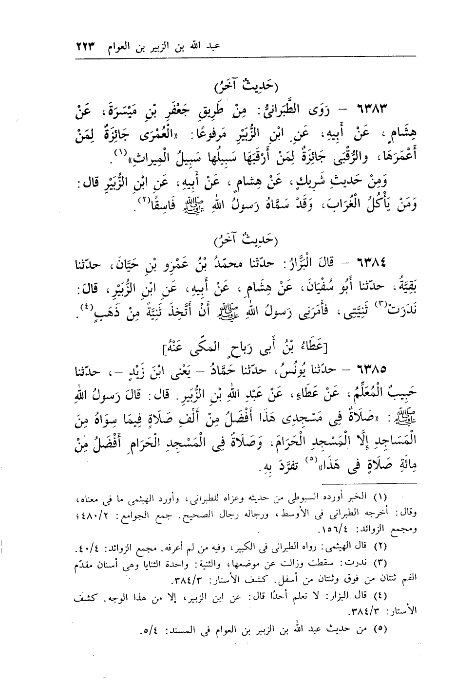 (¬5) من حديث عبد الله بن الزبير بن العوام فى المسند: 4/4.