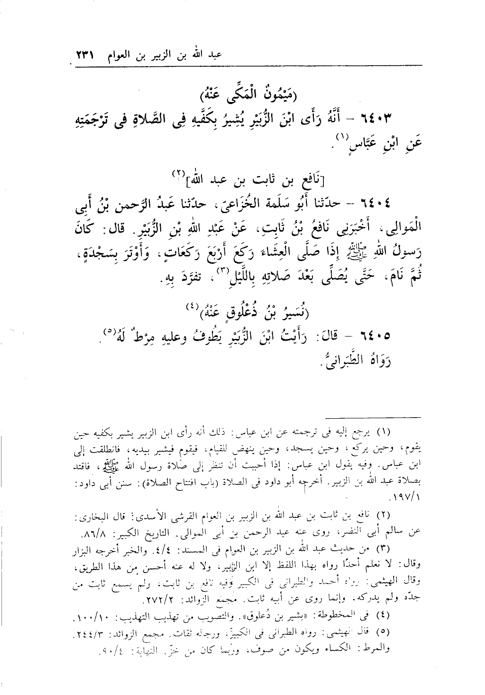6403 - أنه رأى ابن الزبير يشير بكفيه فى الصلاة فى ترجمته عن ابن عباس (¬1) .