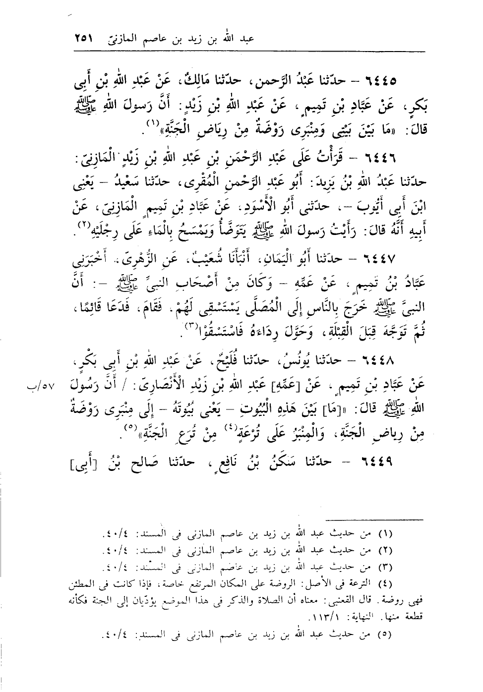 (¬5) من حديث عبد الله بن زيد بن عاصم المازنى فى المسند: 4/40.