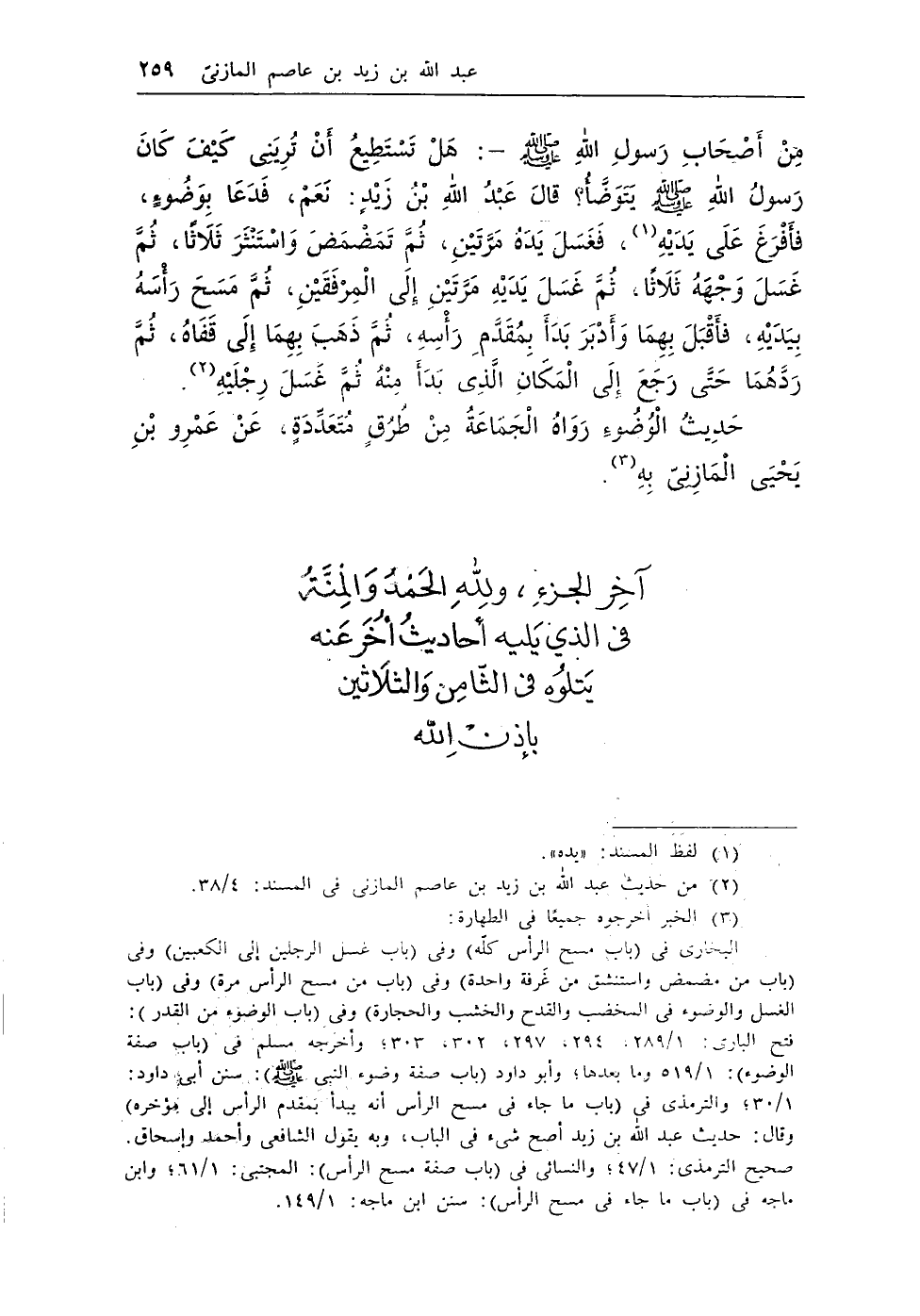 (¬2) كم حديث عبد الله بن زيد بن عاصم المازنى فى المسند: 4/38.