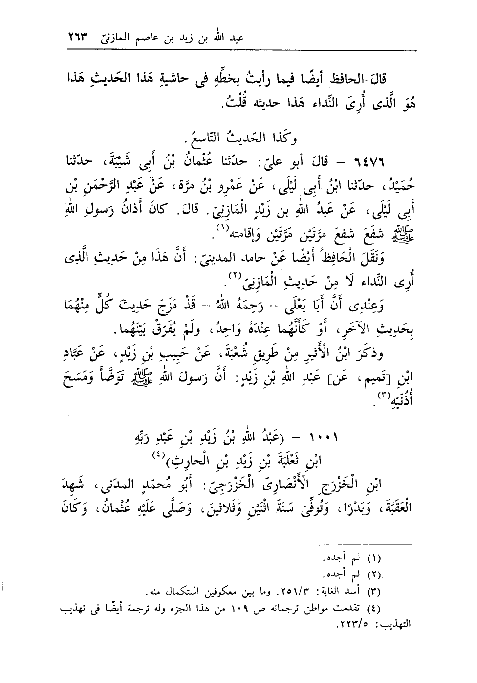 (¬4) تقدمت مواطن ترجماته ص109 من هذا الجزء وله ترجمة أيضًا فى تهذيب التهذيب: 5/223.