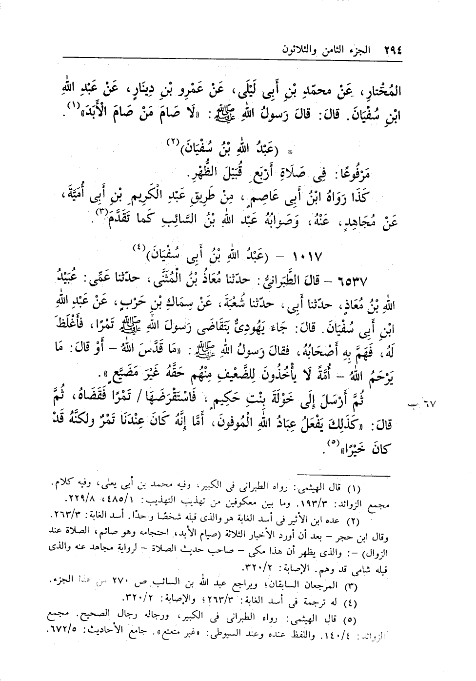 6537 - قال الطبرانى: حدثنا معاذ بن المثنى، حدثنا عمى: عبيد الله بن معاذ، حدثنا أبى، حدثنا شعبة، عن سماك بن حرب، عن عبد الله بن أبى سفيان. قال: جاء يهودى يتقاضى رسول الله - صلى الله عليه وسلم - تمرًا، فأغلظ له، فهم به أصحابه، فقال رسول الله - صلى الله عليه وسلم -: «مَا قَدَّسَ اللهُ ـ أو قال: مَا يَرْحَمُ اللهُ ـ أُمَّةً لاَ يأْخُذُونَ لِلضَّعْيفِ مِنْهُم حَقَّهُ غَيْرَ مَضَيَّعٍ» .