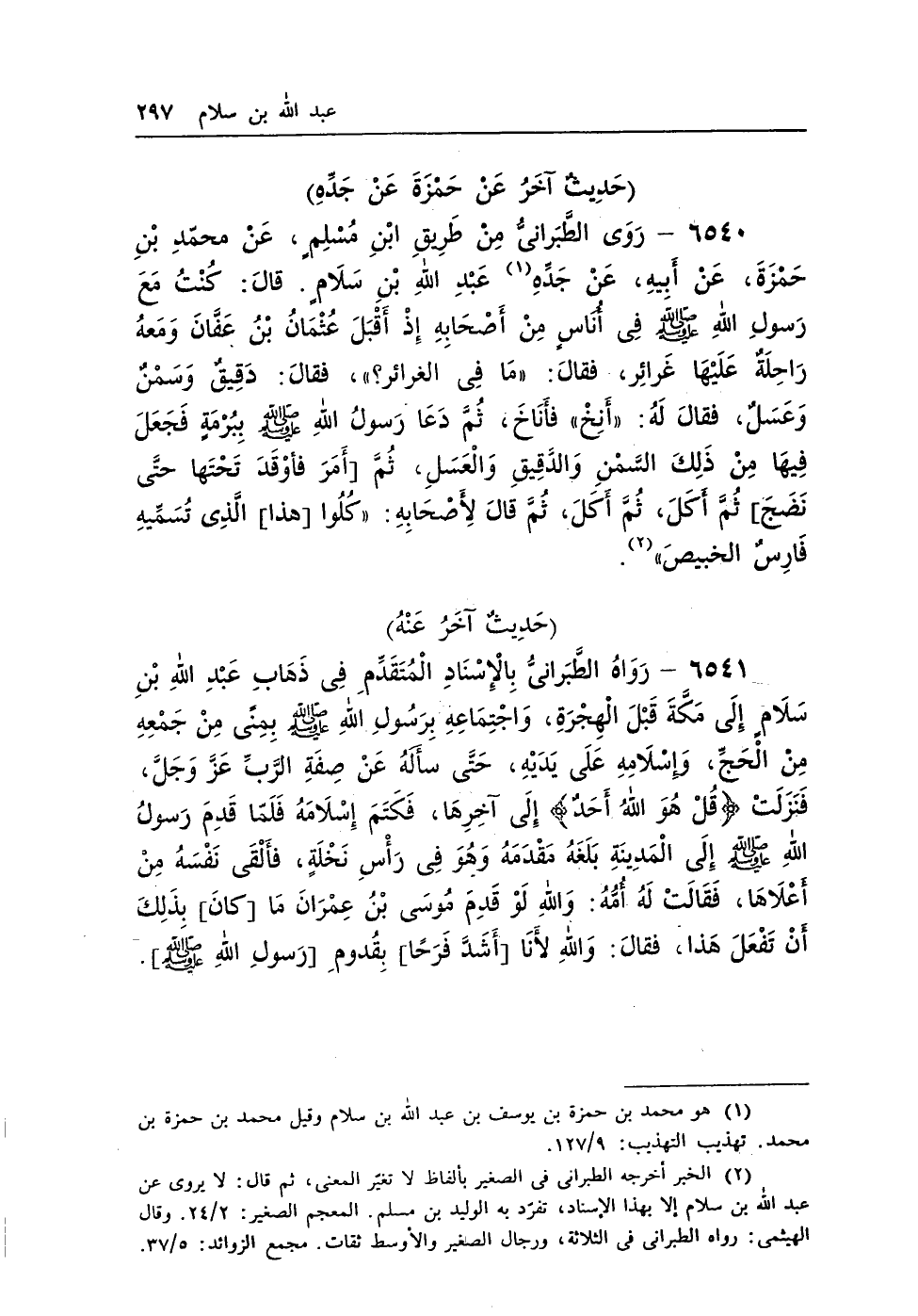 (¬1) هو محمد بن حمزة بن يوسف بن عبد الله بن سلام وقيل محمد بن حمزة بن محمد. تهذيب التهذيب: 9/127.