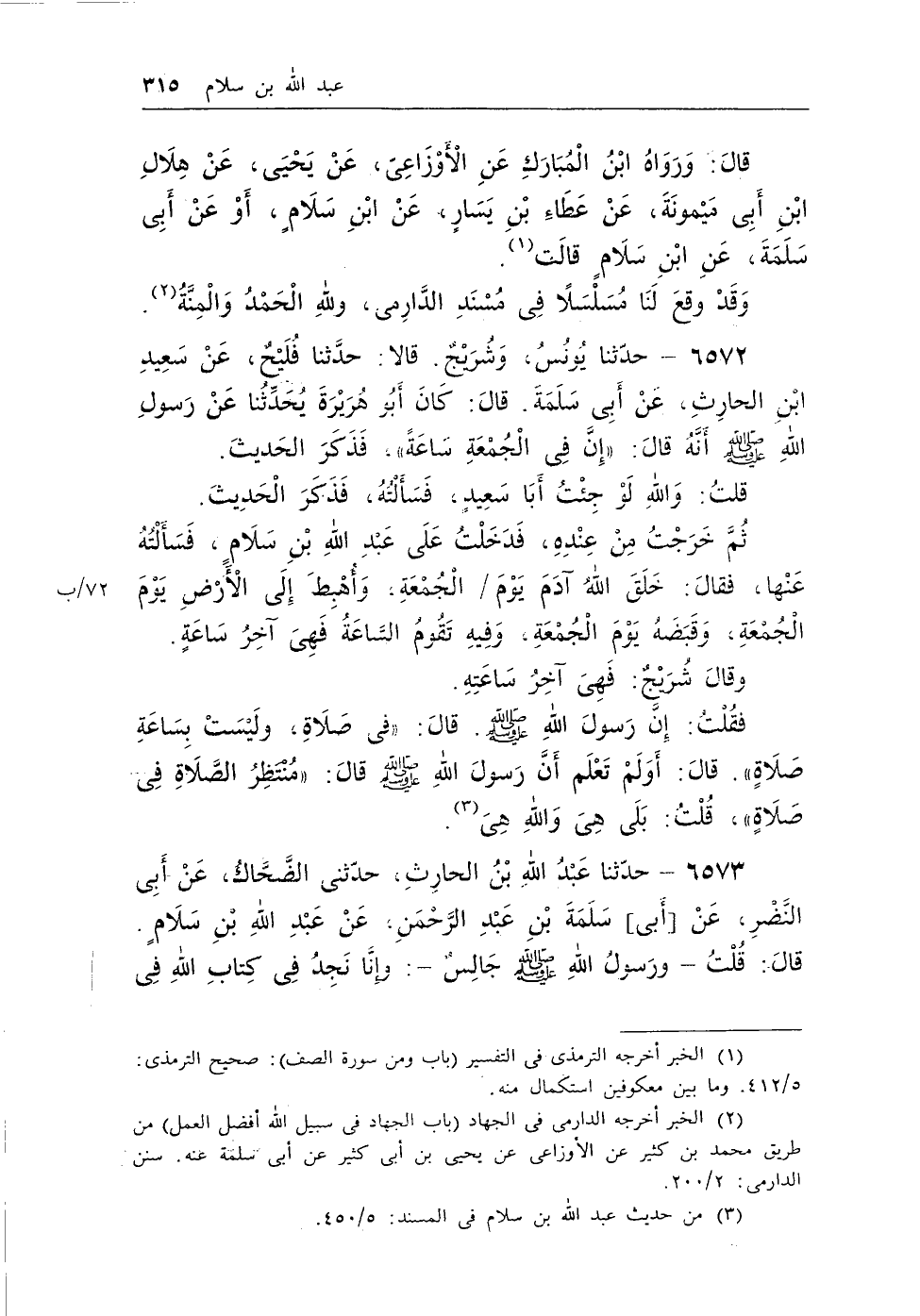 (¬1) من حديث عبد الله بن سلام فى المسند: 5/450.