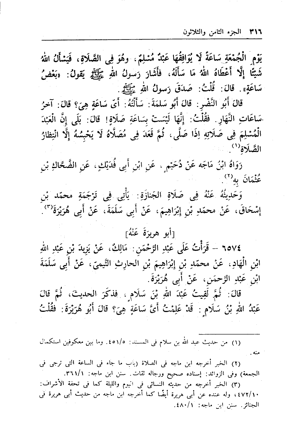(¬2) الخبر أخرجه ابن ماجه فى الصلاة (باب ما جاء فى الساعة التى ترجى فى الجمعة) وفى الزوائد: إسناده صحيح ورجاله ثقات. سنن ابن ماجه: 1/361.