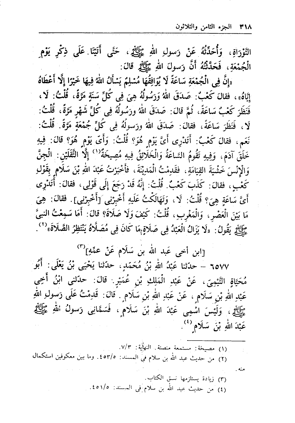 (¬1) من حديث عبد الله بن سلام فى المسند: 5/451.