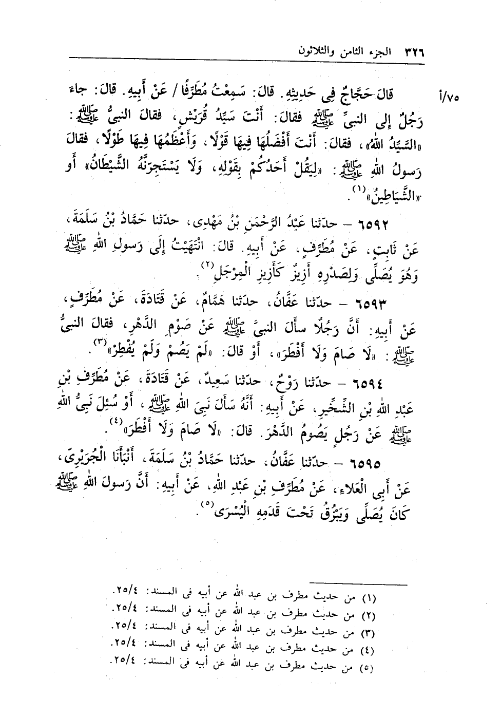 (¬4) من حديث مطرف بن عبد الله عن أبيه فى المسند: 4/25.