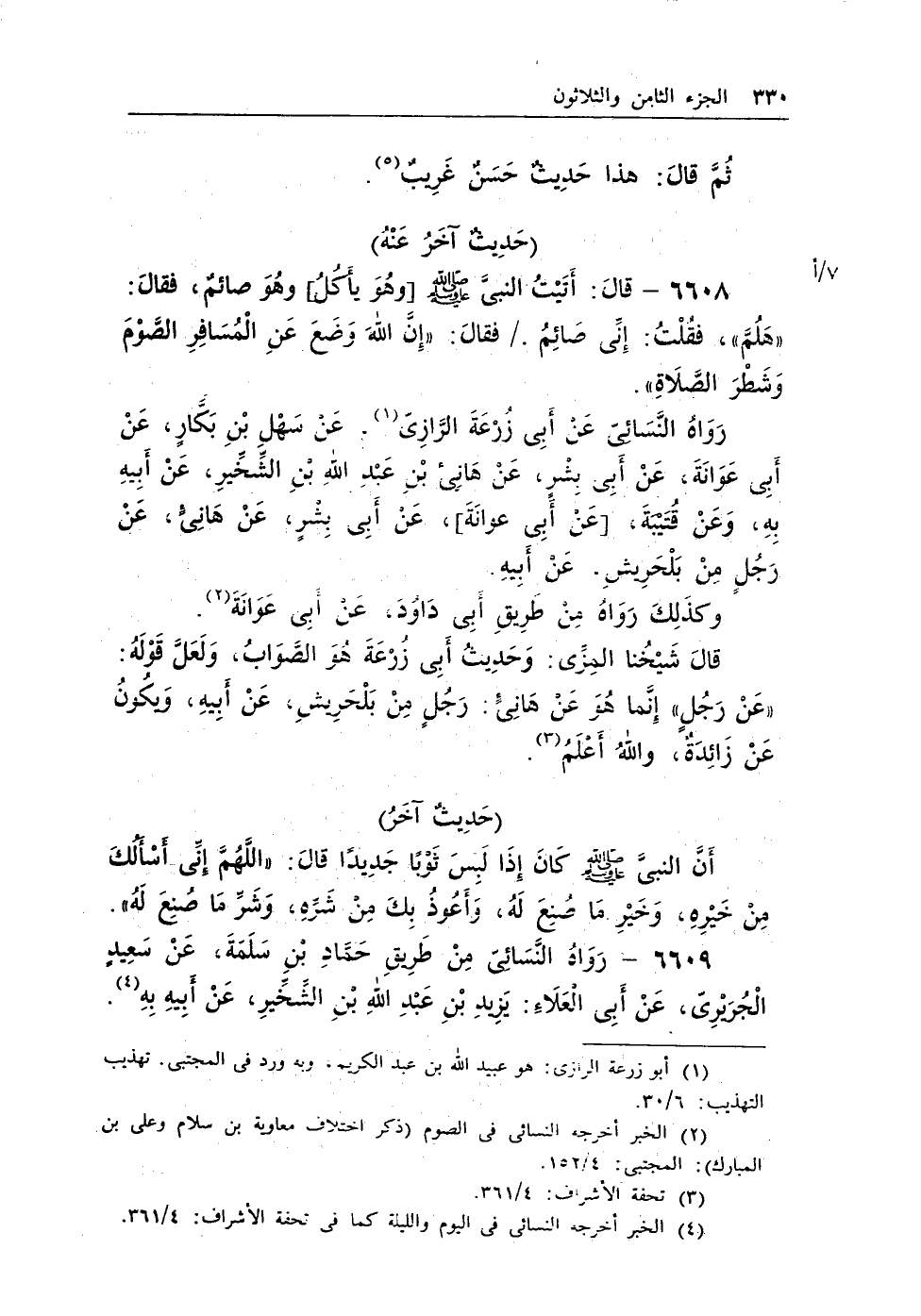 6609 - رواه النسائى من طريق حماد بن سلمة، عن سعيد الجريرى، عن أبى العلاء: يزيد بن عبد الله بن الشخير، عن أبيه به (¬4) .