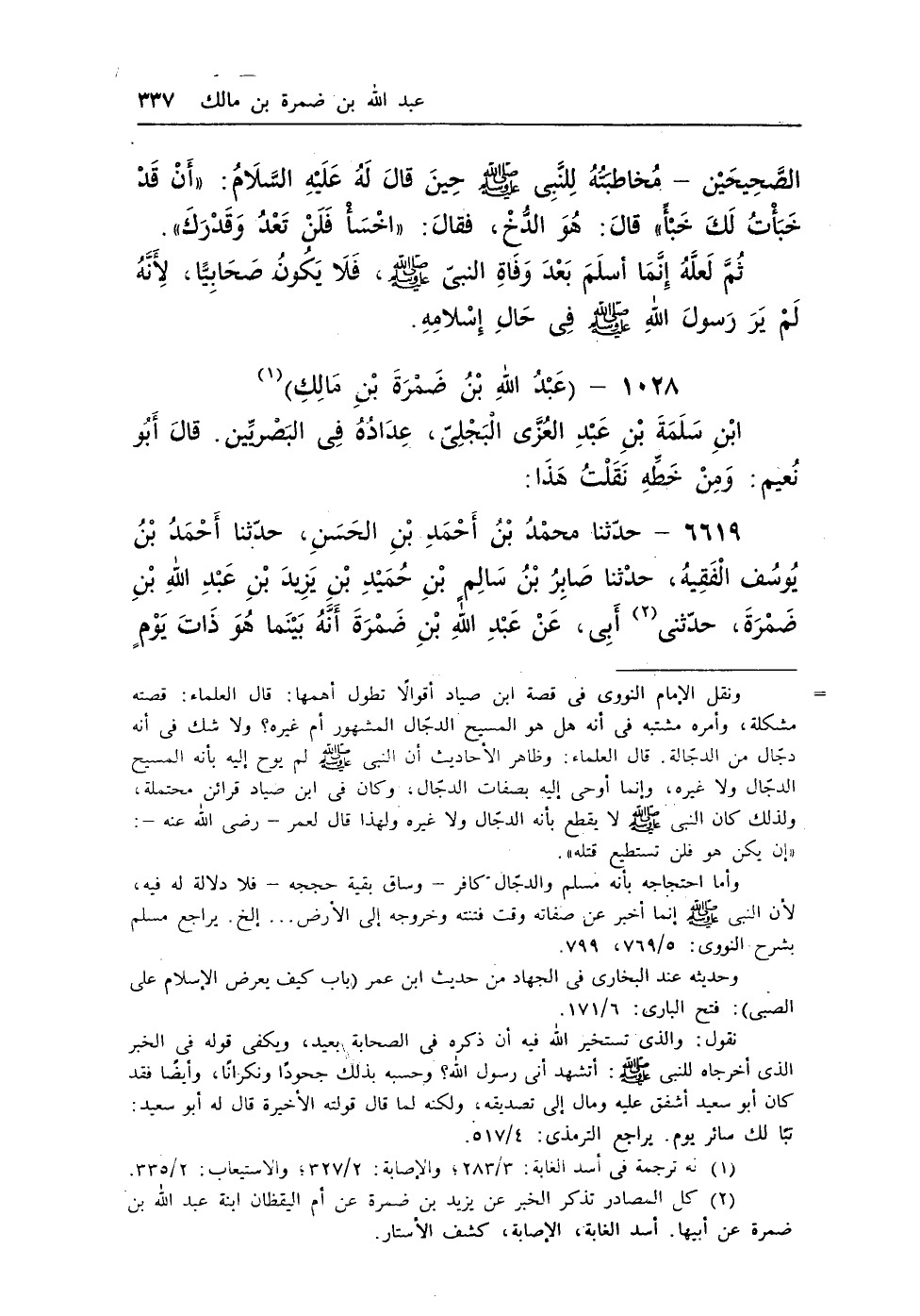 ثم لعله إنما أسلم بعد وفاة النبى - صلى الله عليه وسلم -، فلا يكون صحابيًا، لأنه لم ير رسول الله - صلى الله عليه وسلم - فى حال إسلامه.