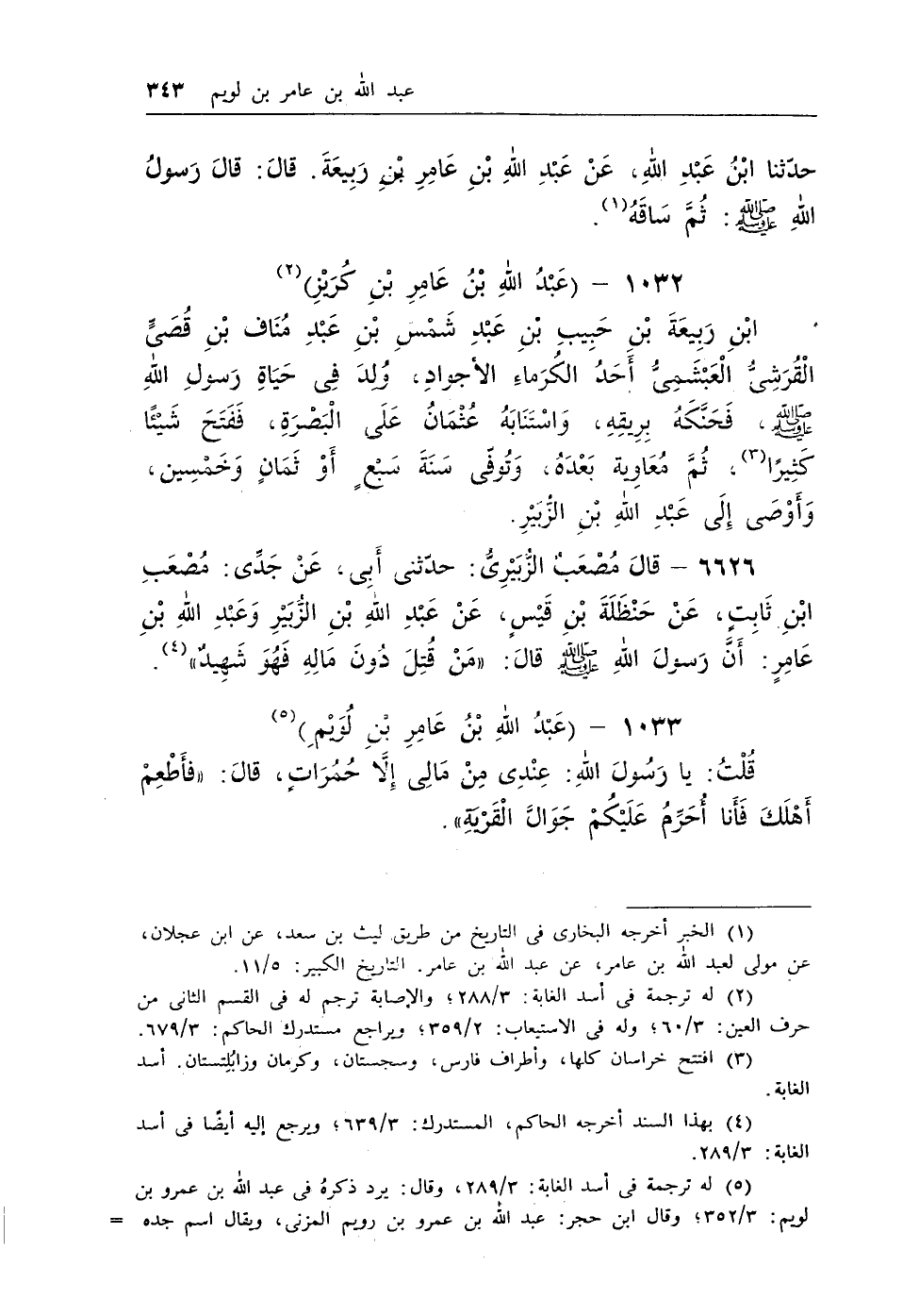 1033- (عَبْدُ اللهِ بْنُ عَامِرِ بْنِ لُوَيْمِ) (¬4)