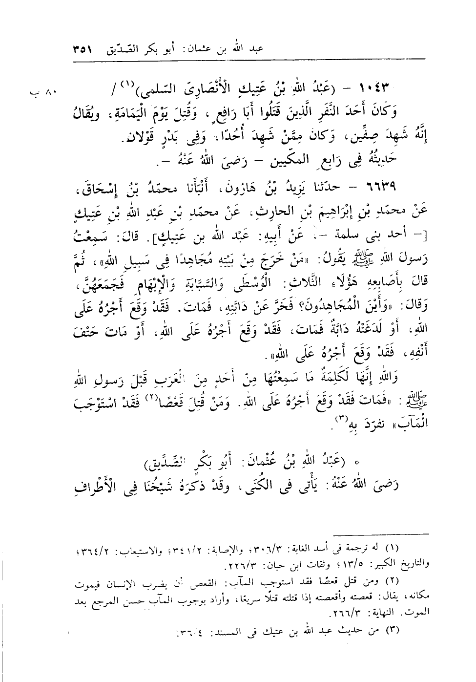 1043- (عَبْدُ اللهِ بْنُ عَتِيك الأَنْصَارِىّ السّلمى) (¬1) /
