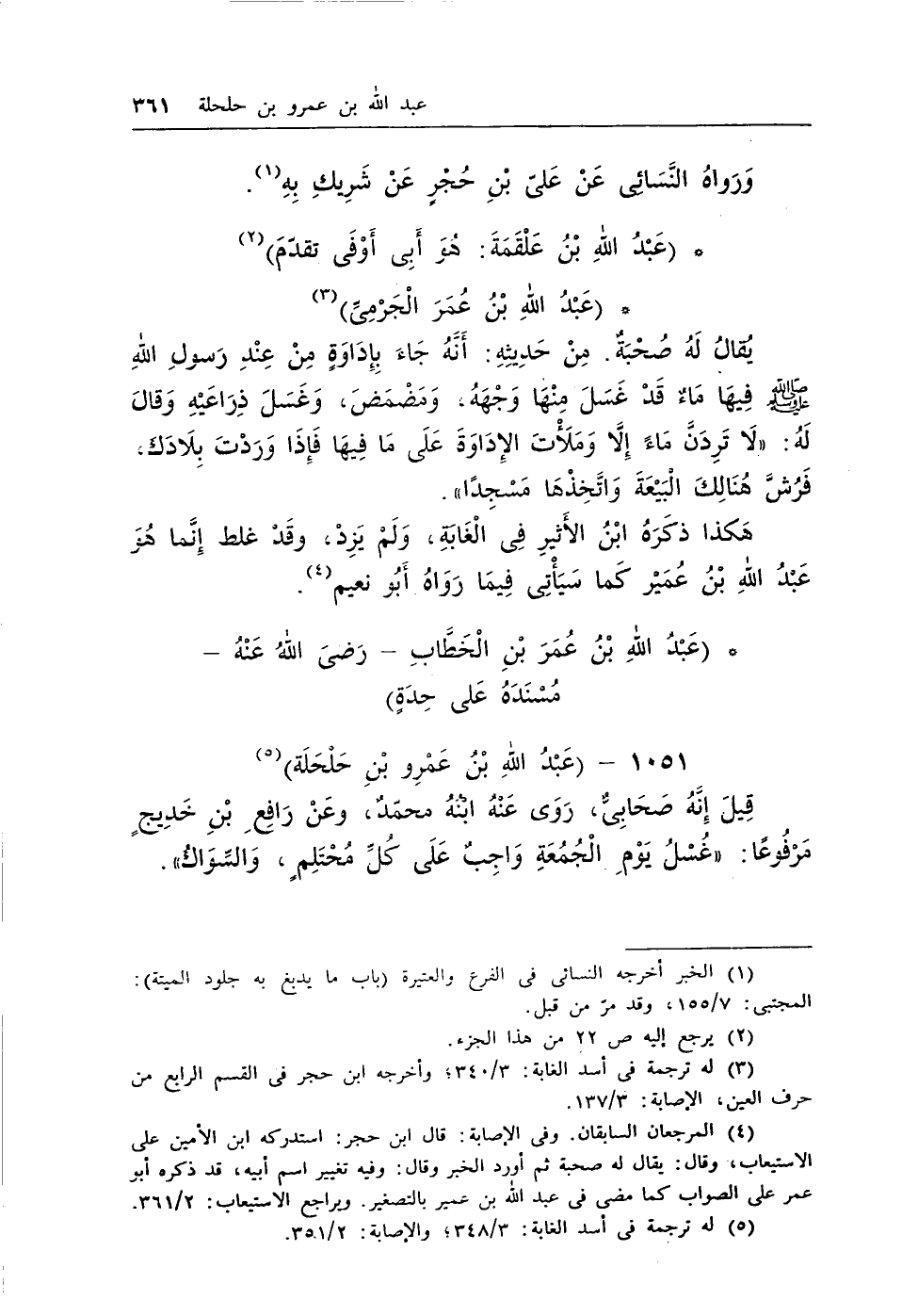 (¬3) له ترجمة فى أسد الغابة: 3/340؛ وأخرجه ابن حجر فى القسم الرابع من حرف العين، الإصابة: 3/137.