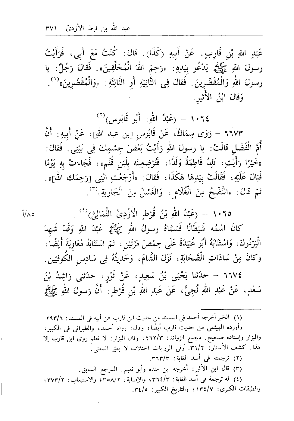 (¬3) له ترجمة فى أسد الغابة: 3/364؛ والإصابة: 2/358؛ والاستيعاب: 2/373؛ والطبقات الكبرى: 7/134؛ والتاريخ الكبير: 5/34.