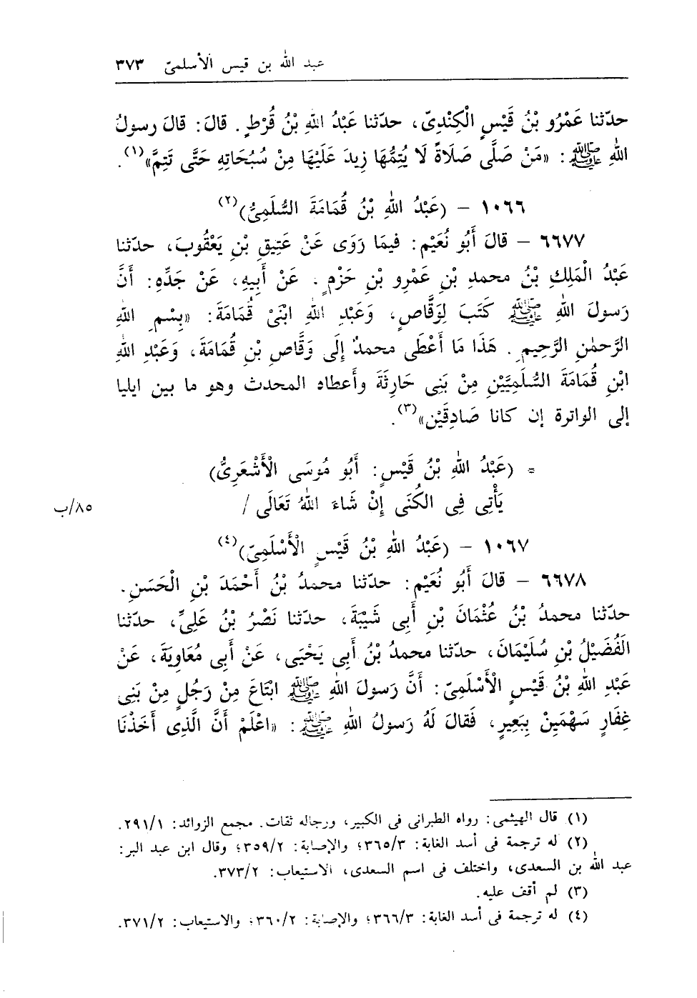 1067- (عَبْدُ اللهِ بْنُ قَيْسٍ الأَسْلَمِىّ) (¬3)