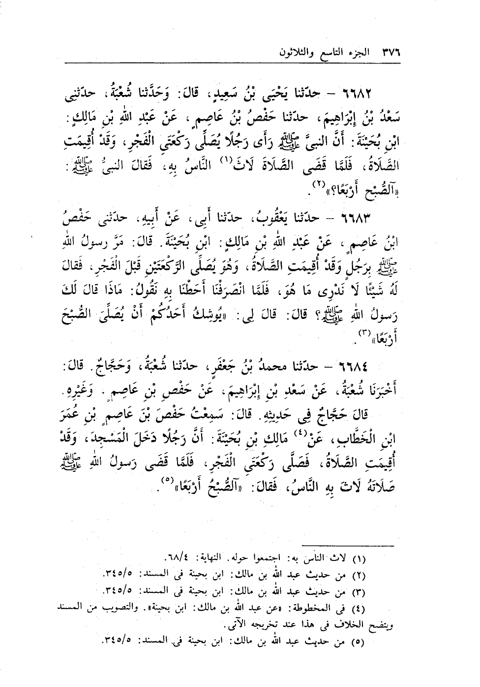 (¬4) فى المخطوطة: «عن عبد الله بن مالك: ابن بحينة» . والتصويب من المسند ويتضح الخلاف فى هذا عند تخريجه الآتى.