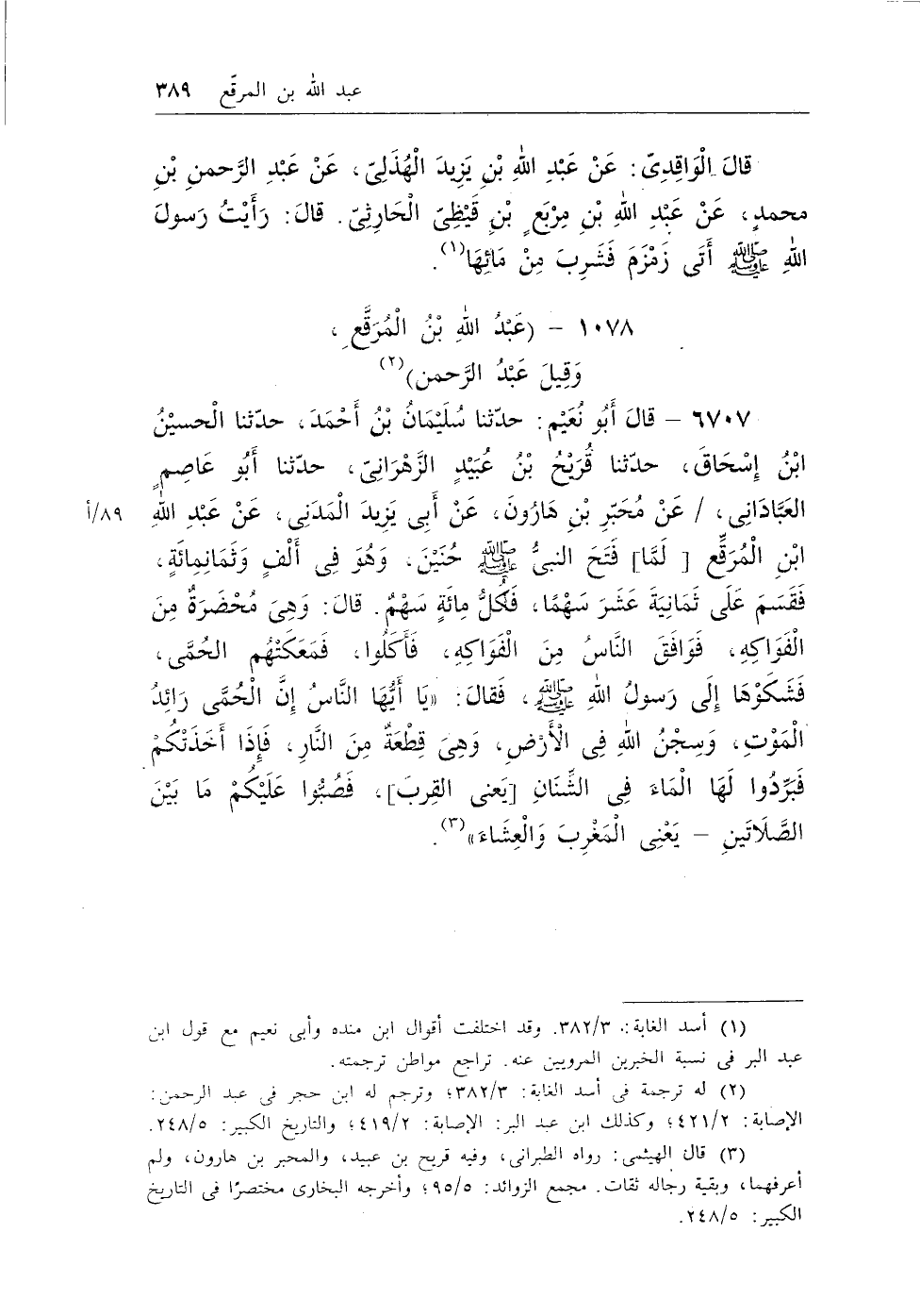(¬1) أسد الغابة: 3/382. وقد اختلفت أقوال ابن منده وأبى نعيم مع قول ابن عبد البر فى نسبة الخبرين المرويين عنه. تراجع مواطن ترجمته.