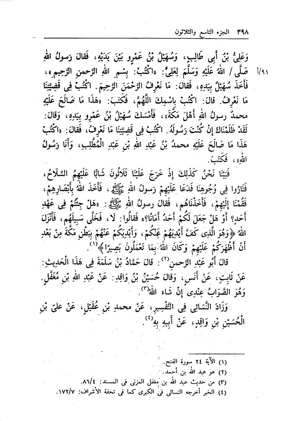(¬4) الخبر أخرجه النسائى فى الكبرى كما فى تحفة الأشراف: 7/172.
