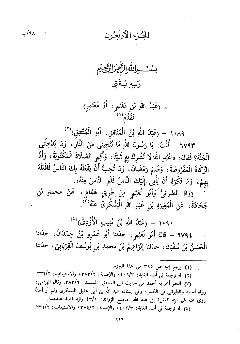 1090- (عَبْدُ اللهِ بْنُ مُنِيبٍ الأَزْدِىُّ) (¬3)