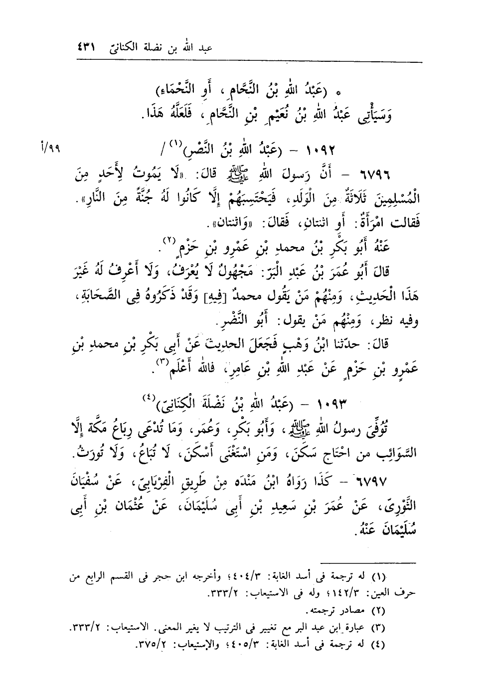 (¬3) عبارة ابن عبد البر مع تغيير فى الترتيب لا يغير المعنى. الاستيعاب: 2/333.