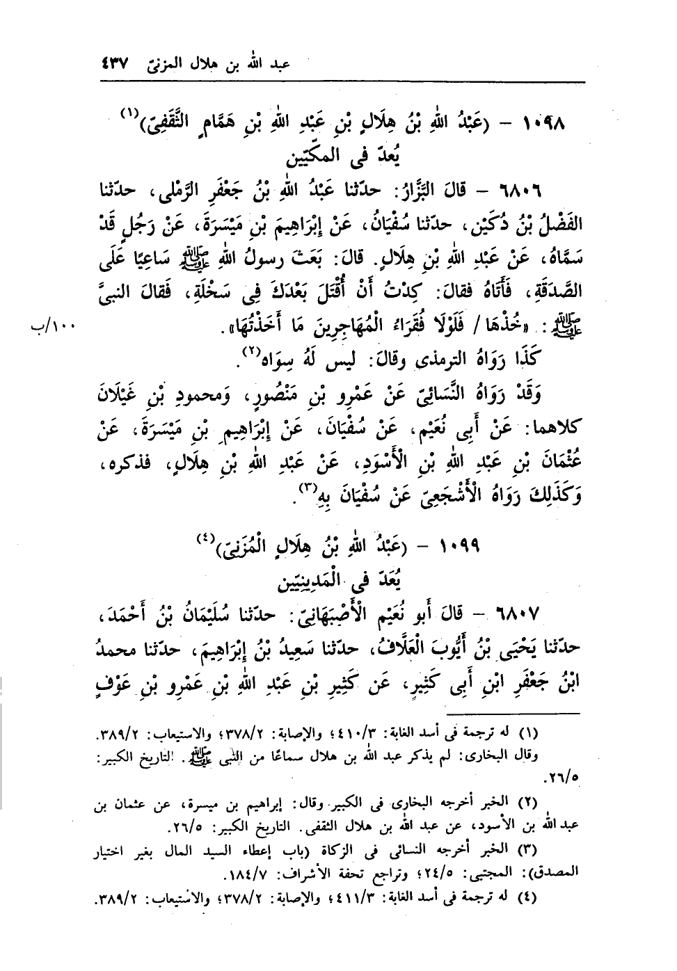 1099- (عبد الله بن هلال المزنى) (¬4)