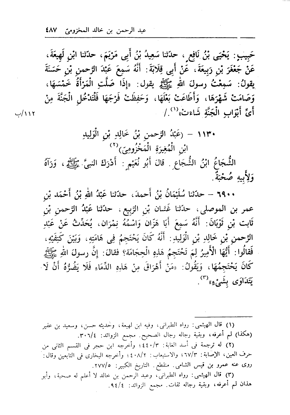 (¬2) قال الهيثمى: رواه الطبرانى، وعبد الرحمن بن خالد لا أعلم له صحبة، وأبو هذان لم أعرفه، وبقية رجاله ثقات. مجمع الزوائد: 4/94.