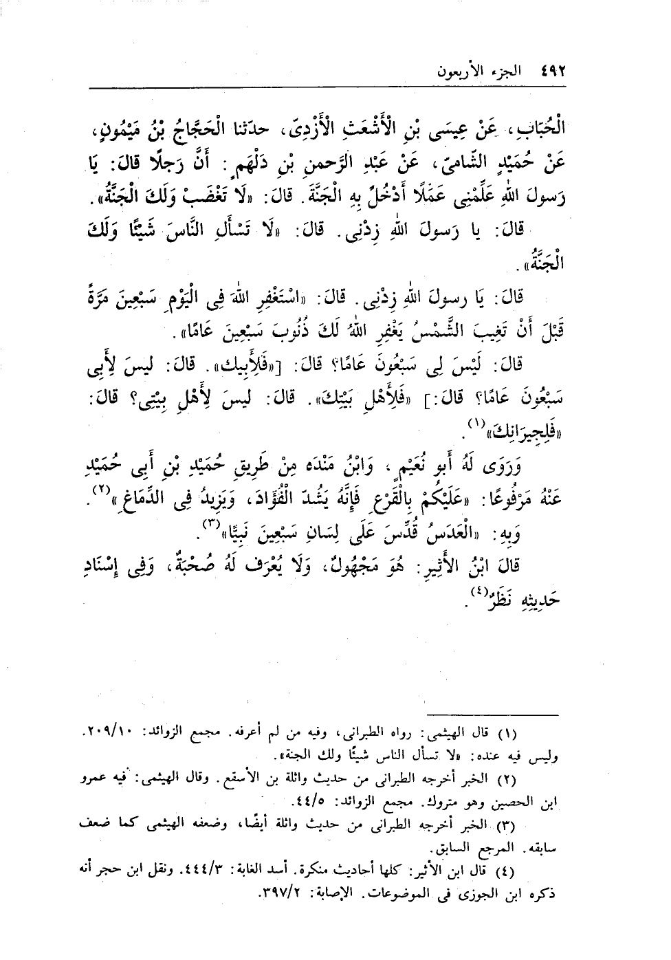 (¬4) قال ابن الأثير: كلها أحاديث منكرة. أسد الغابة: 3/444. ونقل بن حجر أنه ذكره بن الجوزى فى الموضوعات. الإصابة: 2/397.