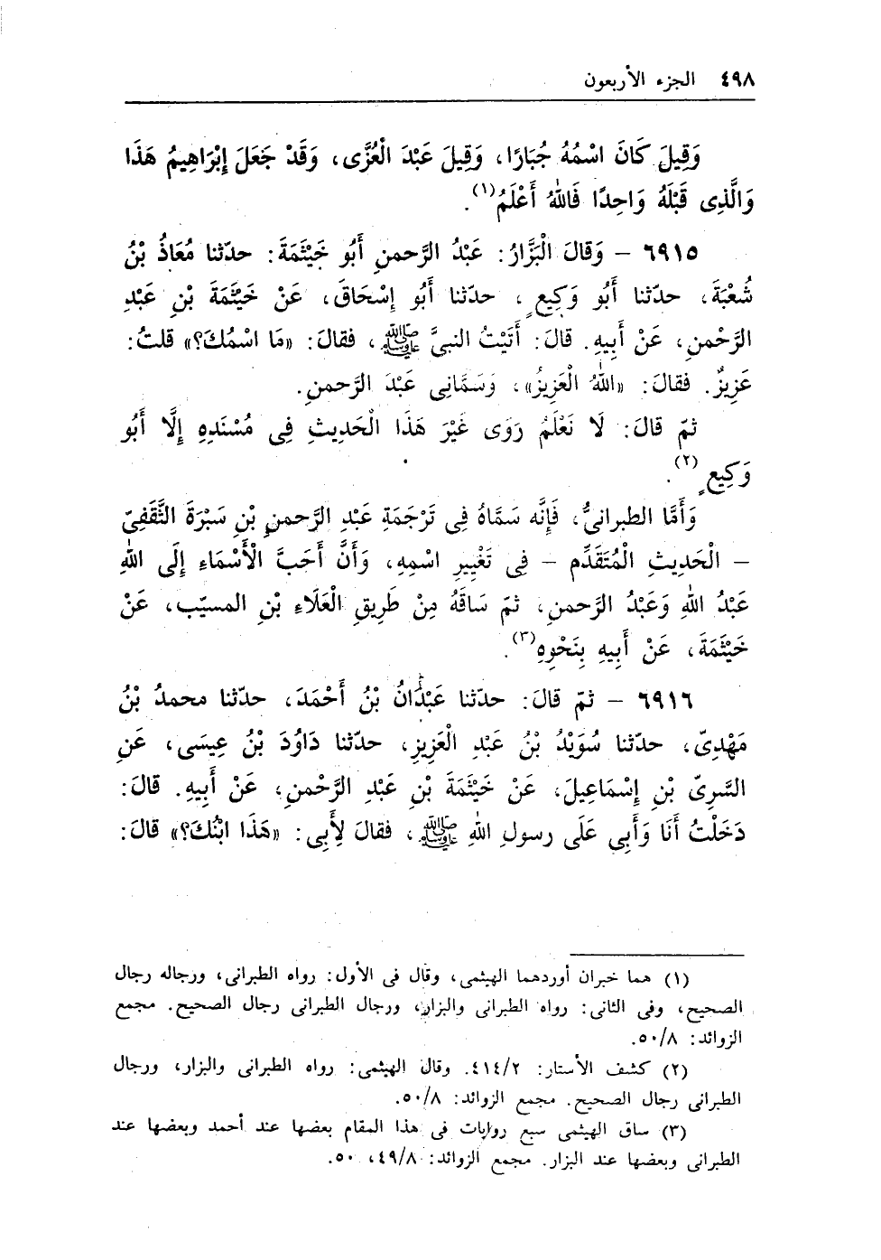 (¬1) كشف الأستار: 2/414. وقال الهيثمى: رواه الطبرانى والبزار، ورجال الطبرانى رجال الصحيح. مجمع الزوائد: 8/50.