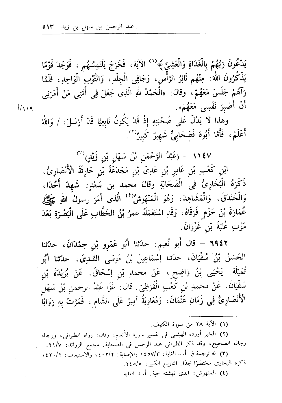 (¬1) له ترجمة فى أسد الغابة: 3/457؛ والإصابة: 2/402؛ والاستيعاب: 2/420؛ ذكره البخارى مختصرًا جداً. التاريخ الكبير: 5/245.