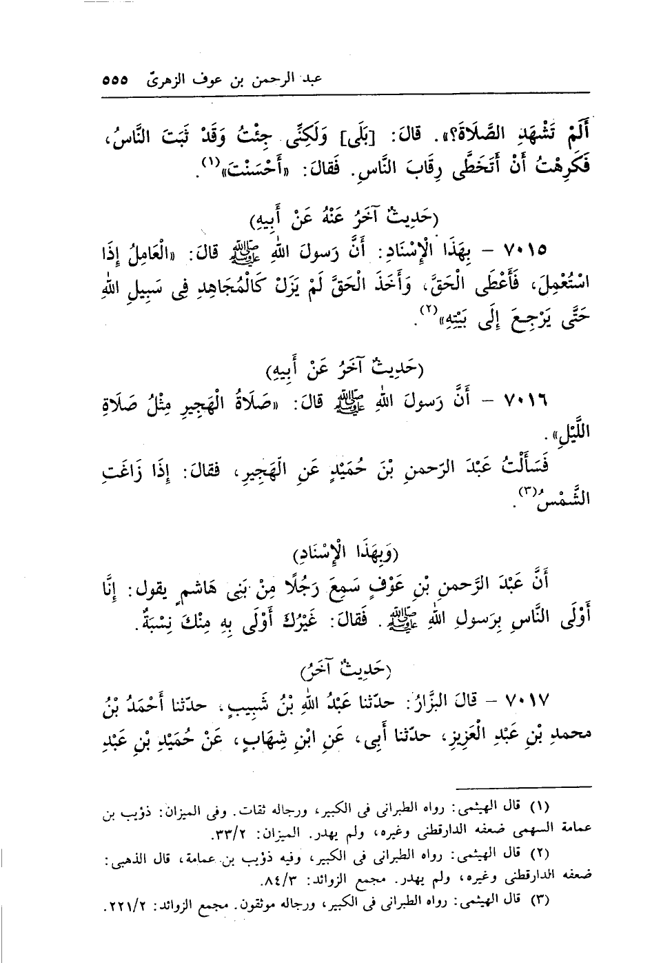 (¬1) قال الهيثمى: رواه الطبرانى فى الكبير، ورجاله ثقات. وفى الميزان: ذؤيب بن عمامة السهمى ضعفه الدار قطنى وغيره، ولم يهدر. الميزان: 2/33.