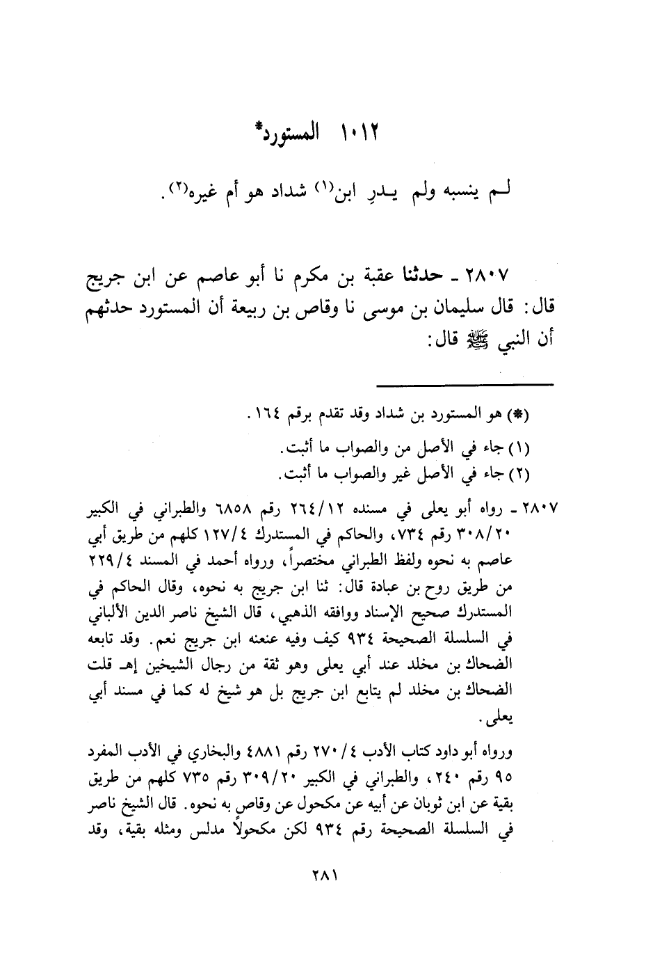 §الْمُسْتَوْرِدُ لَمْ يَنْسُبْهُ وَلَمْ يَدْرِ ابْنُ شَدَّادٍ هُوَ أَمْ غَيْرُهُ