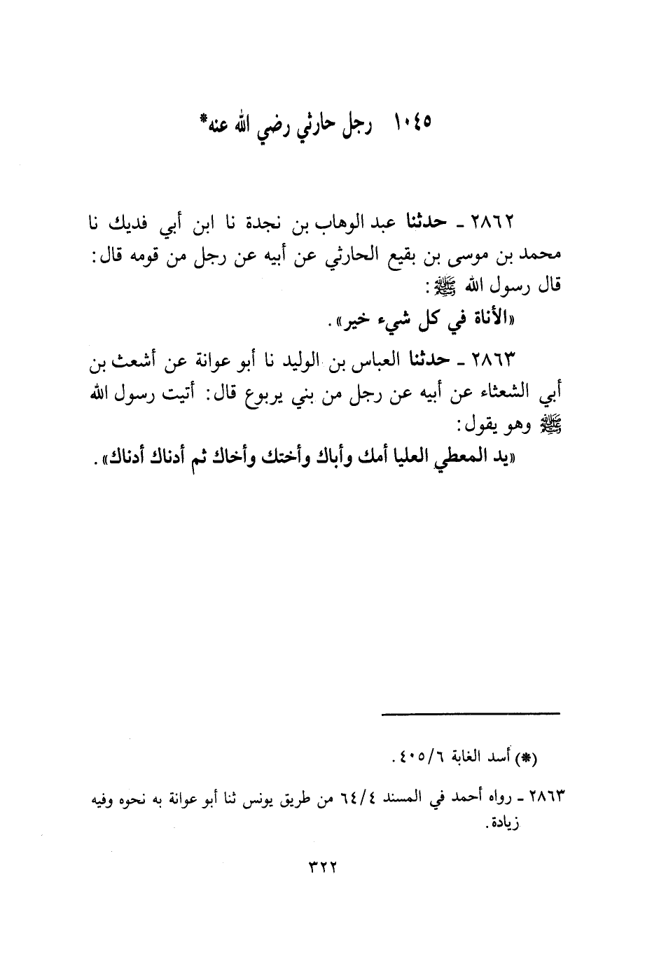 2863 - حَدَّثَنَا الْعَبَّاسُ بْنُ الْوَلِيدِ، نا أَبُو عَوَانَةَ، عَنْ أَشْعَثَ بْنِ أَبِي الشَّعْثَاءِ، عَنْ أَبِيهِ، عَنْ رَجُلٍ مِنْ بَنِي يَرْبُوعَ قَالَ: أَتَيْتُ رَسُولَ اللَّهِ صَلَّى اللهُ عَلَيْهِ وَسَلَّمَ وَهُوَ يَقُولُ: «§يَدُ الْمُعْطِي الْعُلْيَا أُمُّكَ وَأَبَاكَ وَأُخْتُكَ وَأَخَاكَ ثُمَّ أَدْنَاكَ أَدْنَاكَ»