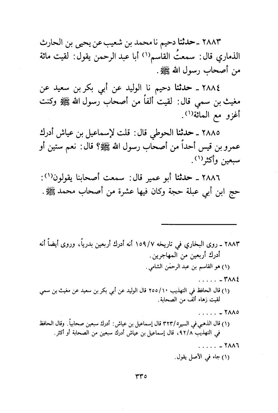 2885 - حَدَّثَنَا الْحَوْطِيُّ قَالَ: قُلْتُ لِإِسْمَاعِيلَ بْنِ عَيَّاشٍ: §أَدْرَكَ عَمْرُو بْنُ قَيْسٍ أَحَدًا مِنْ أَصْحَابِ رَسُولِ اللَّهِ صَلَّى اللهُ عَلَيْهِ وَسَلَّمَ؟ قَالَ: نَعَمْ، سِتِّينَ أَوْ سَبْعِينَ وَأَكْثَرَ