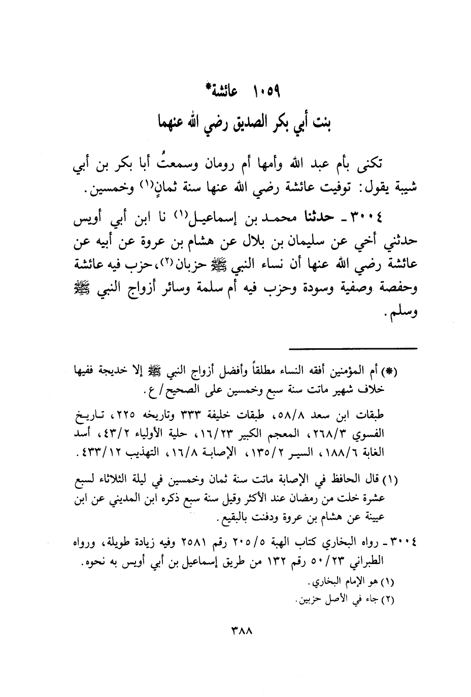 3004 - حَدَّثَنَا مُحَمَّدُ بْنُ إِسْمَاعِيلَ، نا ابْنُ أَبِي أُوَيْسٍ، حَدَّثَنِي أَخِي، عَنْ سُلَيْمَانَ بْنِ بِلَالٍ، عَنْ هِشَامِ بْنِ عُرْوَةَ، عَنْ أَبِيهِ، عَنْ عَائِشَةَ رَضِيَ اللَّهُ عَنْهَا، أَنَّ §نِسَاءَ النَّبِيِّ صَلَّى اللهُ عَلَيْهِ وَسَلَّمَ حِزْبَانِ، حِزْبٌ فِيهِ عَائِشَةُ وَحَفْصَةُ وَصَفِيَّةُ وَسَوْدَةُ، وَحِزْبٌ فِيهِ أُمُّ سَلَمَةَ وَسَائِرُ أَزْوَاجِ النَّبِيِّ صَلَّى اللهُ عَلَيْهِ وَسَلَّمَ "