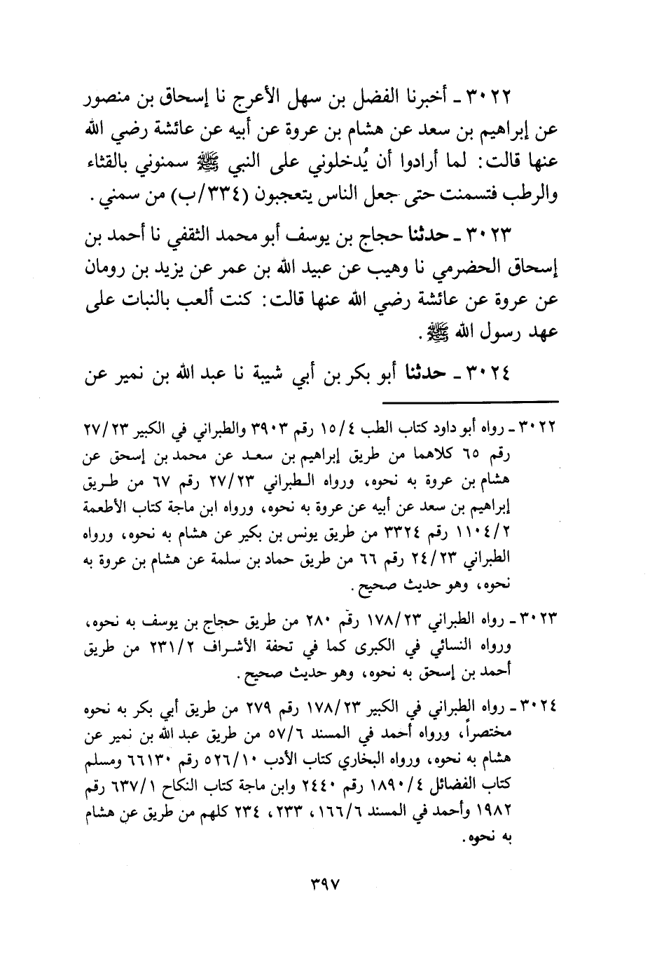 3022 - أَخْبَرَنَا الْفَضْلُ بْنُ سَهْلٍ الْأَعْرَجُ، نا إِسْحَاقُ بْنُ مَنْصُورٍ، عَنْ إِبْرَاهِيمَ بْنِ سَعْدٍ، عَنْ هِشَامِ بْنِ عُرْوَةَ، عَنْ أَبِيهِ، عَنْ عَائِشَةَ، رَضِيَ اللَّهُ عَنْهَا قَالَتْ: §لَمَّا أَرَادُوا أَنْ يُدْخِلُونِي عَلَى النَّبِيِّ صَلَّى اللهُ عَلَيْهِ وَسَلَّمَ سَمَّنُونِي بِالْقِثَّاءِ وَالرُّطَبِ فَتَسَمَّنْتُ حَتَّى جَعَلَ النَّاسُ يَتَعَجَّبُونَ مِنْ سِمَنِي "