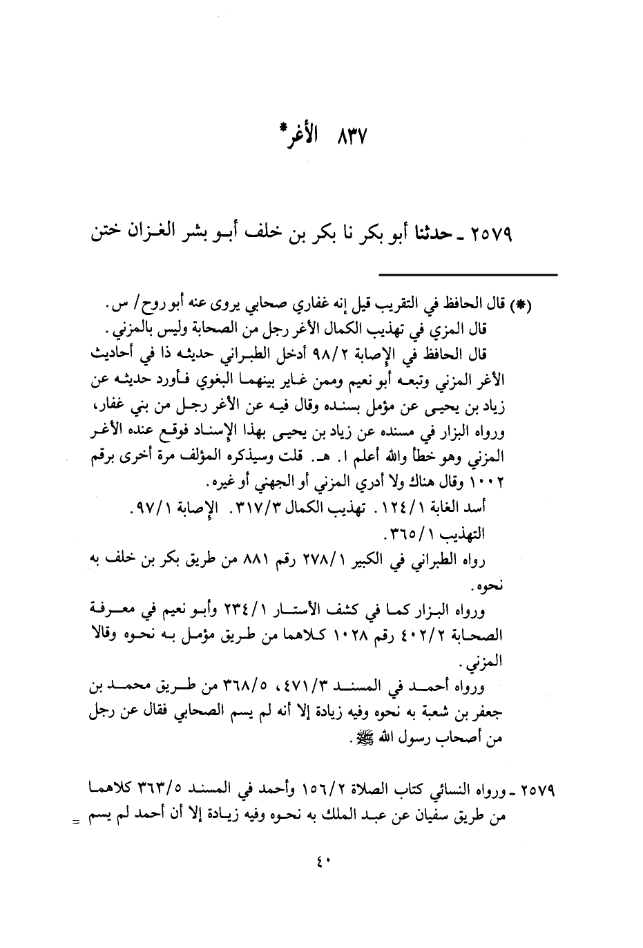 2579 - حَدَّثَنَا أَبُو بَكْرٍ، نا بَكْرُ بْنُ خَلَفٍ أَبُو بِشْرٍ الْغَزَّانُ، خَتَنُ -[41]- أَبِي عَبْدِ الرَّحْمَنِ الْمُقْرِئِ نا مُؤَمَّلٌ، عَنْ شُعْبَةَ، عَنْ عَبْدِ الْمَلِكِ بْنِ عُمَيْرٍ، عَنْ شَبِيبٍ بنِ أَبِي رَوْحٍ، عَنْ رَجُلٍ، مِنْ أَصْحَابِ النَّبِيِّ صَلَّى اللهُ عَلَيْهِ وَسَلَّمَ يُقَالُ لَهُ: الْأَغَرُّ قَالَ: صَلَّيْتُ خَلْفَ النَّبِيِّ صَلَّى اللهُ عَلَيْهِ وَسَلَّمَ الصُّبْحَ §فَقَرَأَ بِسُورَةِ الرُّومِ