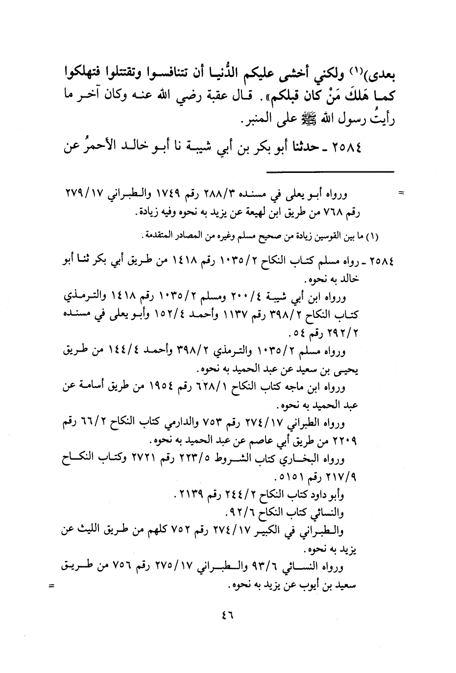 2584 - حَدَّثَنَا أَبُو بَكْرِ بْنُ أَبِي شَيْبَةَ، نا أَبُو خَالِدٍ الْأَحْمَرُ، عَنْ -[47]- عَبْدِ الْحَمِيدِ بْنِ جَعْفَرٍ، عَنْ يَزِيدَ بْنِ حَبِيبٍ، عَنْ مَرْثَدِ بْنِ عَبْدِ اللَّهِ الْيَزَنِيِّ، عَنْ عُقْبَةَ بْنِ عَامِرٍ رَضِيَ اللَّهُ عَنْهُ قَالَ: قَالَ رَسُولُ اللَّهِ صَلَّى اللهُ عَلَيْهِ وَسَلَّمَ: «إِنَّ §أَحَقَّ الشُّرُوطِ أَنْ يُوَفَّى بِهِ مَا اسْتَحْلَلْتُمْ بِهِ الْفُرُوجَ»