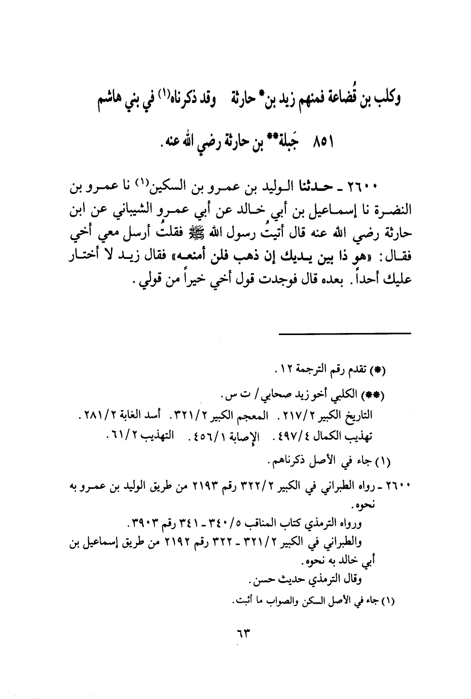 §وَكَلْبُ بْنُ قُضَاعَةَ فَمِنْهُمْ زَيْدُ بْنُ حَارِثَةَ، وَقَدْ ذَكَرْنَاهُ فِي بَنِي هَاشِمٍ