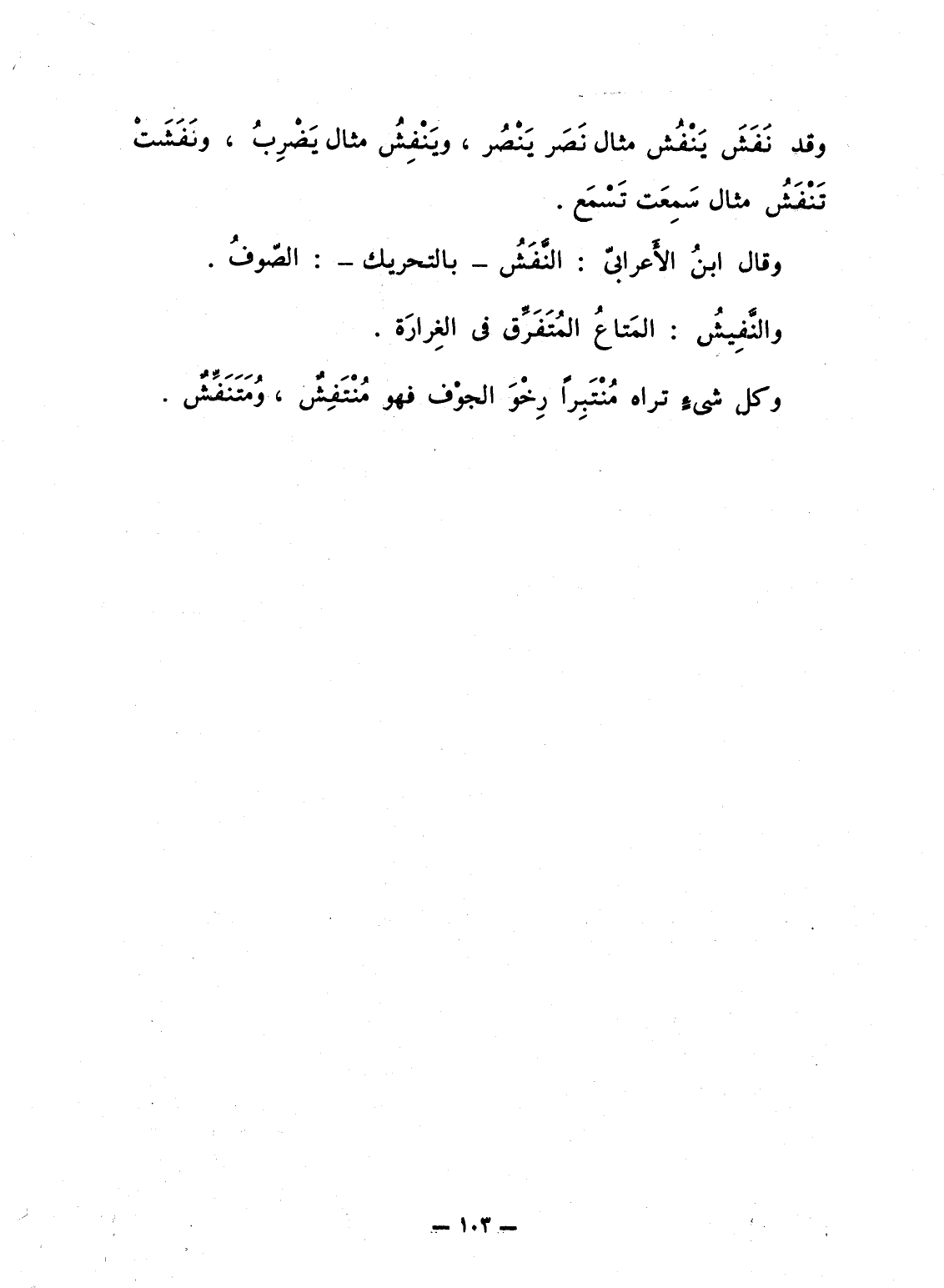وقد نَفَشَ يَنْفُش مثال نَصَر يَنْصُر، ويَنْفِشُ مثال يَضْرِبُ، ونَفَشَتْ تَنْفَشُ مثال سَمِعَت تَسْمَع.